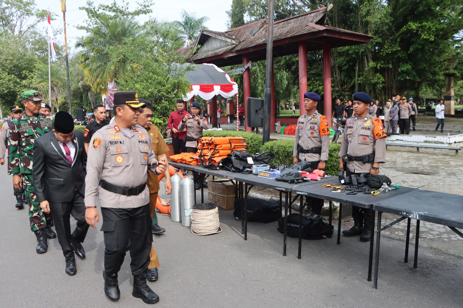 Sampit – Kapolres Kotim, AKBP Resky Maulana Zulkarnain, S.H., S.I.K., M.H. memimpin apel tanggap darurat bencana hidrometeorologi di wilayah hukum Polres Kotawaringin Timur di taman kota Sampit, Apel ini dihadiri oleh Forkopimda Kab. Kotim, TNI/Polri, Sat Pol PP, Damkar, BPBD, Basarnas, dan instansi terkait lainnya, pada hari Rabu pagi (05/11/2025).