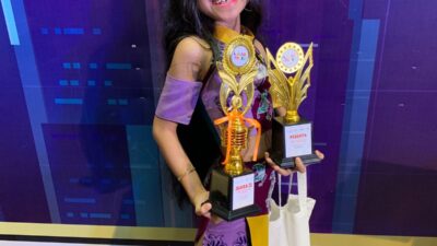 Foto: Dzakia Arraudah Khumairah Akhmad salah satu pemenang kedua lomba fashion show dan menghias tumpeng…
