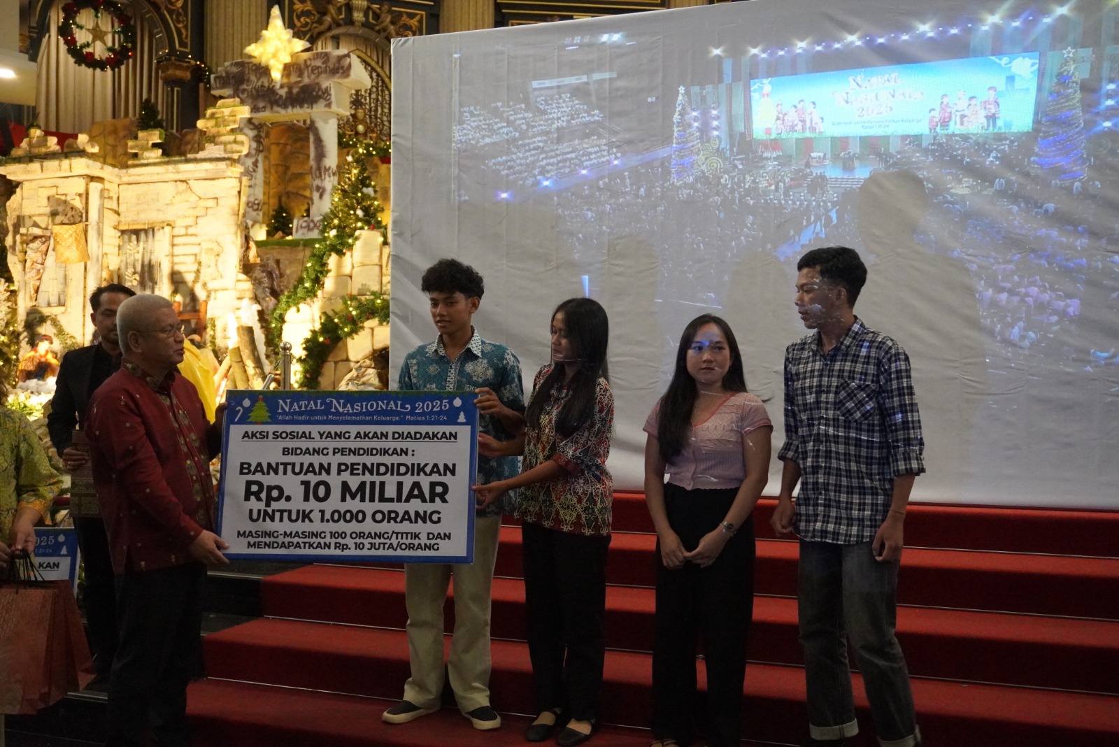 Sebagai bagian dari rangkaian Natal Nasional 2025, Panitia Natal Nasional juga menyalurkan berbagai program bantuan berskala nasional. Di bidang kesejahteraan masyarakat, disiapkan 20.000 paket sembako yang disalurkan kepada masyarakat di sepuluh wilayah pelaksanaan Natal Nasional, termasuk Kalimantan Barat. Selain itu, Panitia Natal Nasional menyalurkan bantuan pendidikan dan beasiswa senilai Rp10 miliar kepada 1.000 penerima manfaat di sepuluh wilayah Indonesia, dengan masing-masing penerima mendapatkan Rp10 juta.