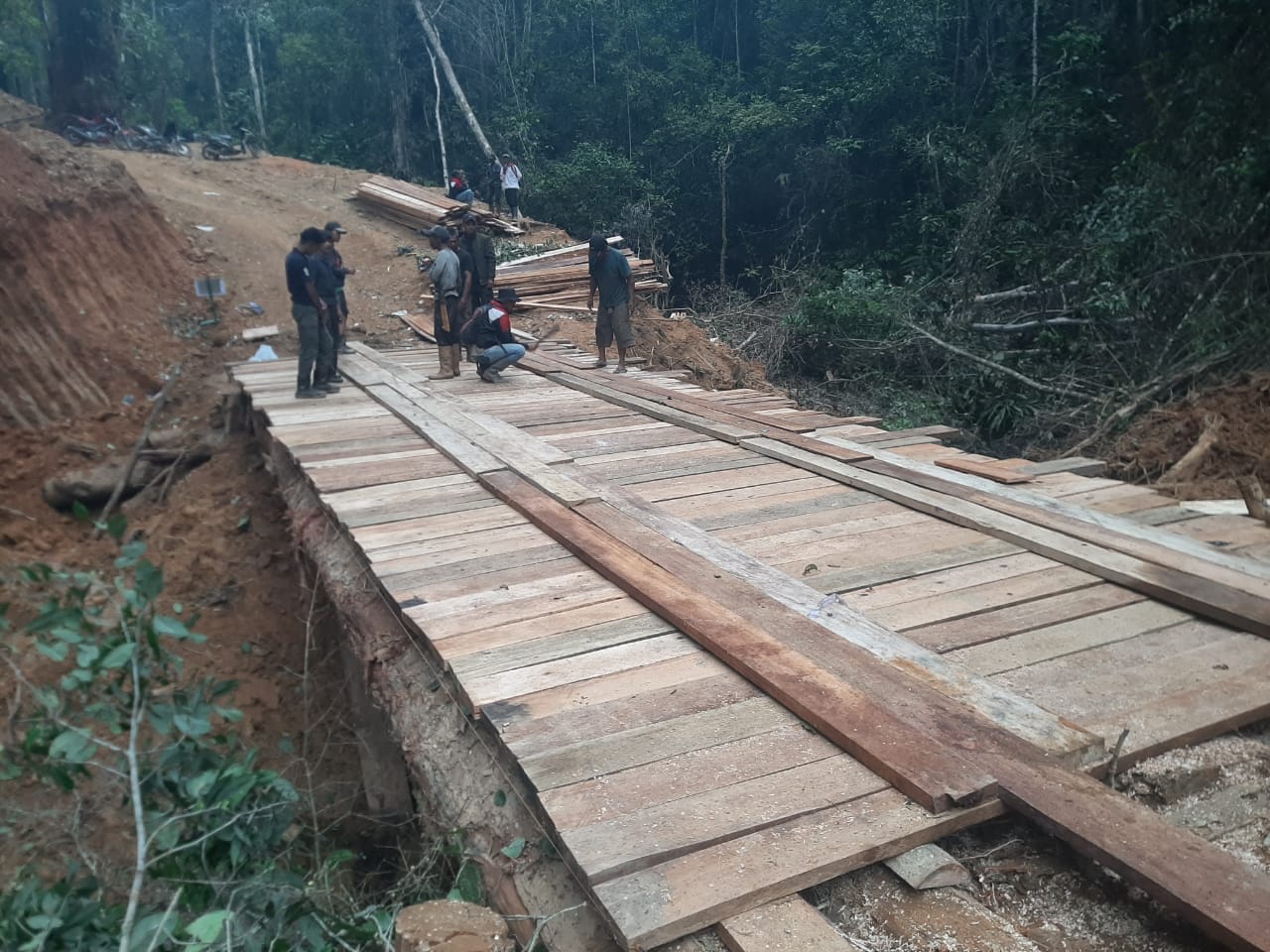 TNI dan Warga Bahu-Membahu Bangun Jembatan Penghubung Antar Dusun di Aceh Tengah